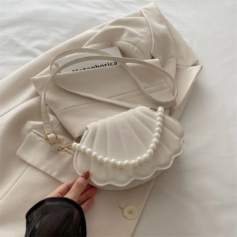 Be the first to review “Pearl Accent Shell-Shaped shoulder bag”